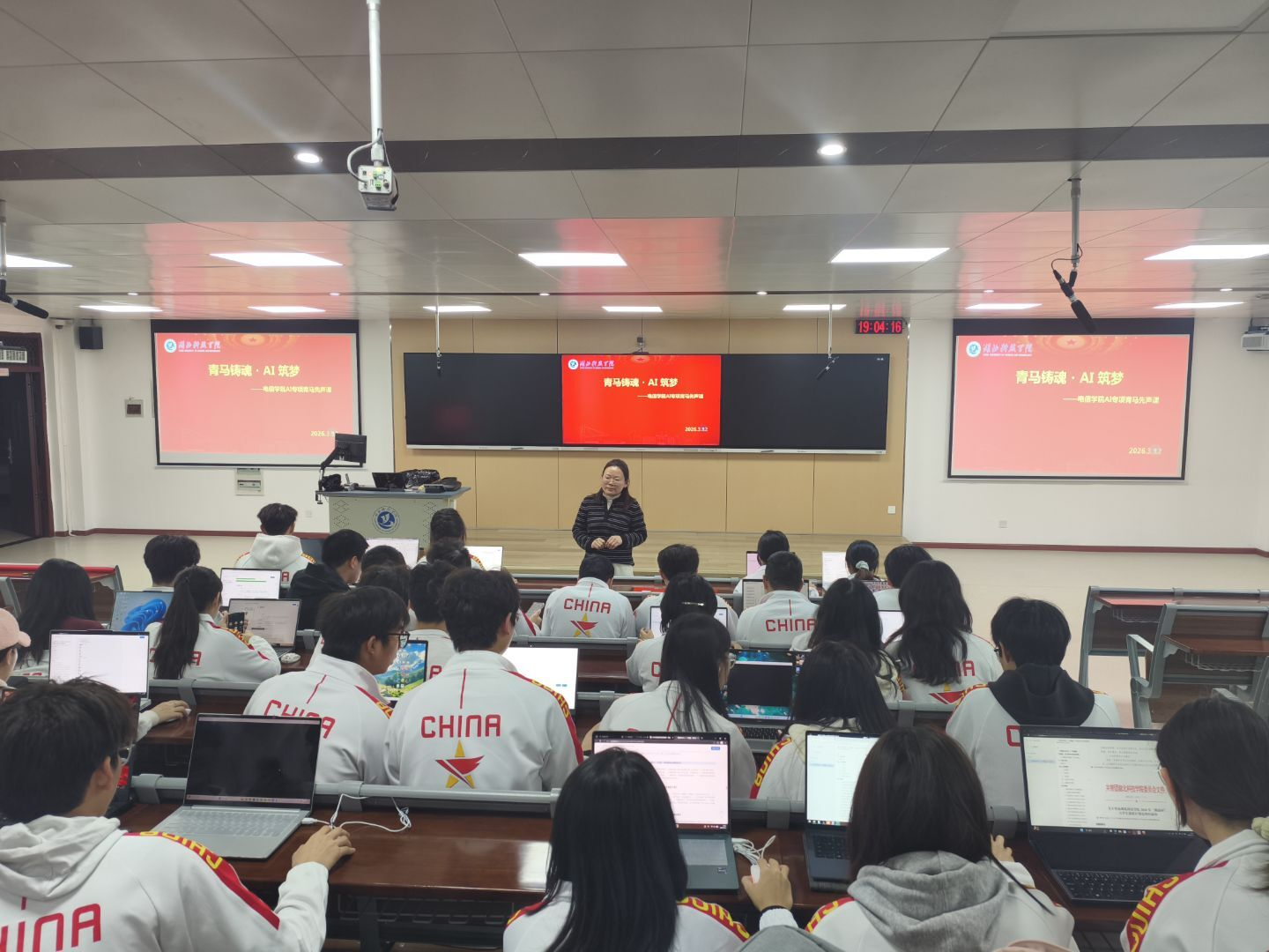 (通讯员:冯兴龙 摄影:张英姿 何丹莉)为深化青年马克思主义者培养工程内涵,推动青马精神培育与科技创新实践深度融合,助力2026年湖北科技学院“挑战杯”大学生创业计划竞赛备赛工作走深走实,2026年3月12日,湖北科技学院76net必赢官网“AI赋能砺匠心,青马学子展风采”AI专项青马先声课在温泉校区教三301正式举行。学院分团委书记、青马班班主任金伟老师担任主讲,青马班全体学员以饱满热情投入这场融思想性、技术性、实践性于一体的创新课堂,在AI赋能中锤炼备赛能力,在科技报国中践行青年担当。