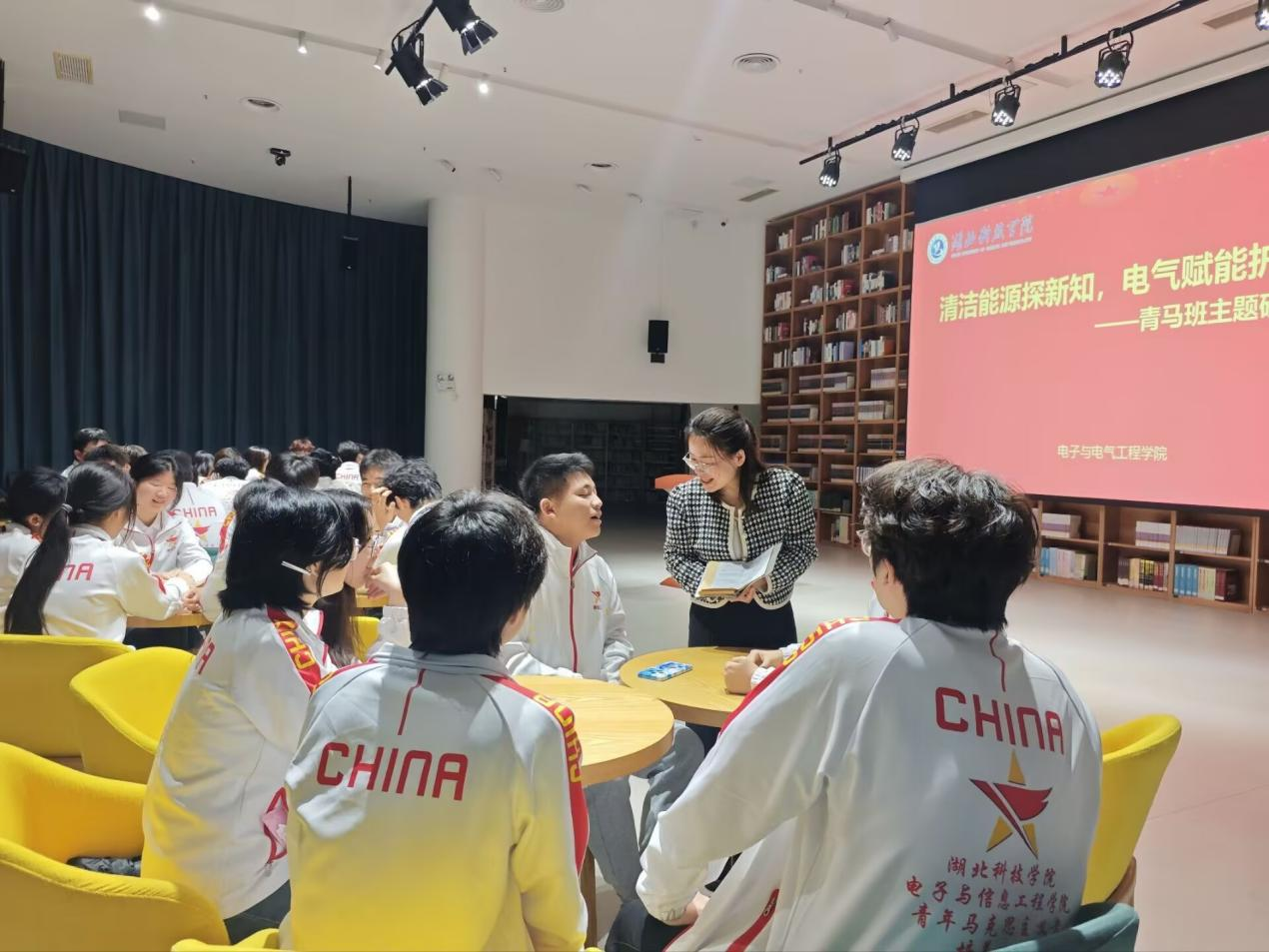 参观结束后,全体学员在图书馆会议室开展了“清洁能源与青年担当”主题座谈会。学院陈院长受邀出席并作主题分享,他从专业视角出发,深入浅出地讲解了电气工程在能源革命中的核心支撑作用,指出从光伏、风电等新能源发电,到智能电网、储能系统、新能源汽车驱动,再到工业节能、建筑节电、乡村电气化,电气技术正全方位赋能绿色发展。陈院长勉励青马学员们要紧跟行业前沿,夯实专业根基,主动关注国家能源发展战略,将个人成长融入国家绿色发展大局,在服务“双碳”目标中实现人生价值。
