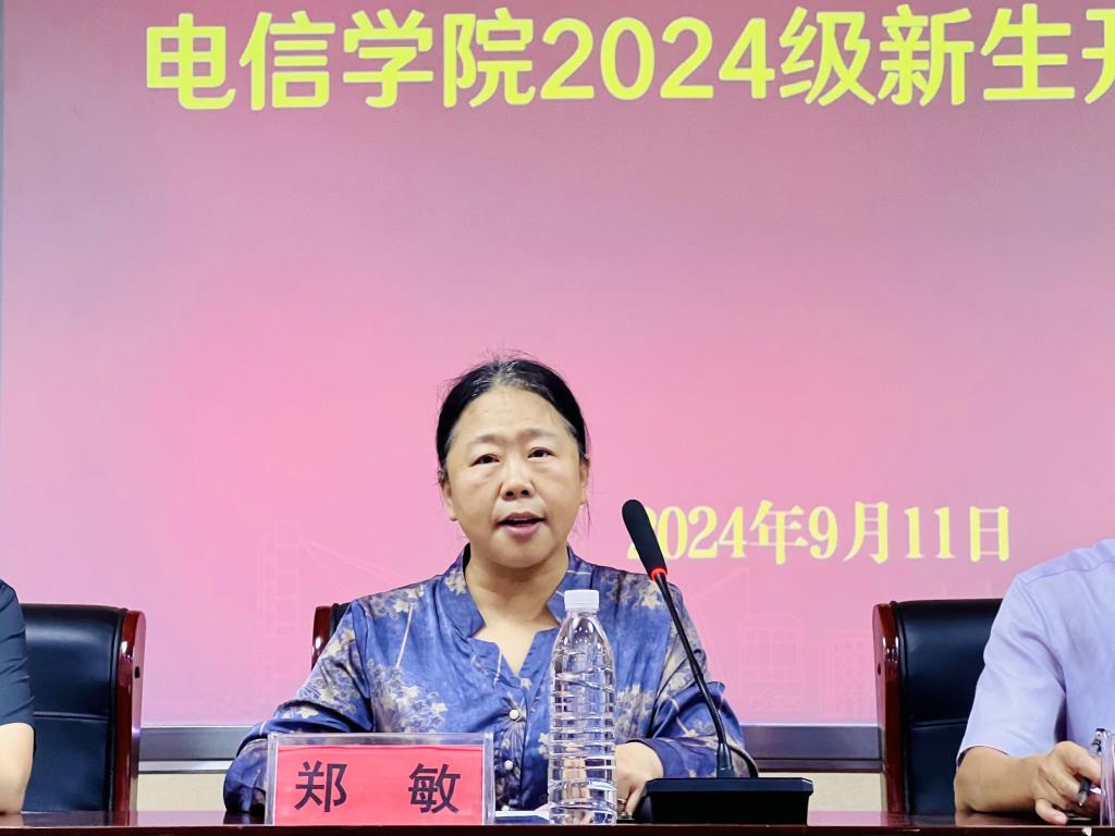 911日上午电信学院在教学楼3-401及教4-503隆重举行了2024级新生开学典礼。电信学院党委书记郑敏、院长陈志远、副院长汪洋、钟东等学院领导全体辅导员、新生班主任和全体2024级新生参加学工办主任魏学胜主持
