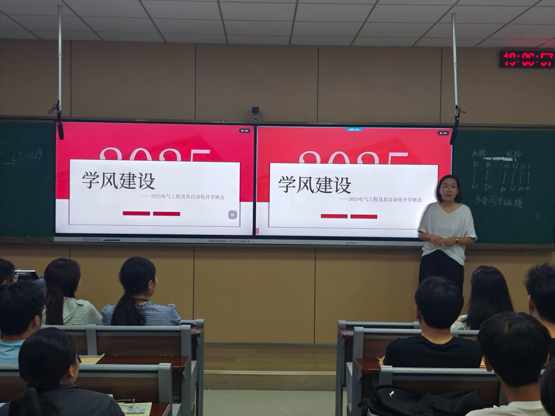 班会期间,班导师带领同学们系统学习课堂文明礼仪“五规范”和学业管理“六严禁”,重点解读课前准备、课堂互动、课后反馈等关键环节的行为准则。围绕“纪律约束与自主学习的关系”,同学们分组展开辩论,最终达成共识:严明的纪律是高效学习的保障,自主学习必须以遵守规则为前提。辅导员着重强调,学生干部要主动扛起“学风带头人”职责,带头坐前排、带头发言、带头完成学习任务,形成“一人带动一组,一组影响一班”的良好氛围。