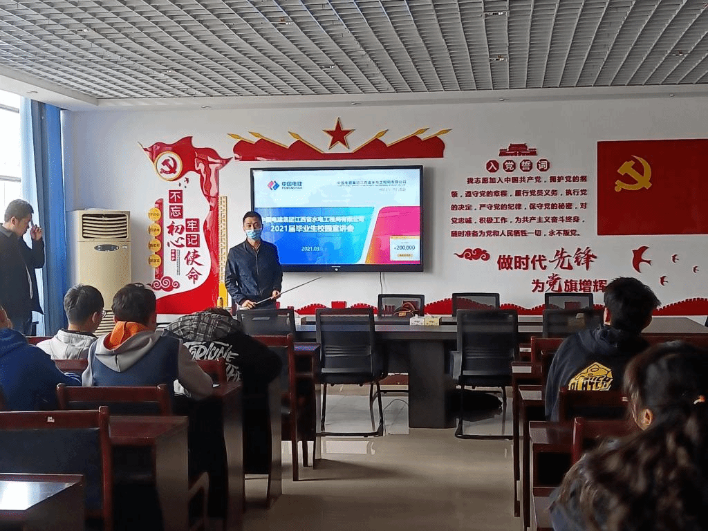 在宣讲会过程中,中国电建集团江西省水电工程局有限公司负责人负责人将一些大家都主要关注的点都用非常直接的数据和生活的话语及案例直观的展现出来,让得同学们都能更好的去了解该公司的运行情况和薪资待遇等;而且负责人还将该公司的实力和其他的分公司明确的凸显了出来,也展现了公司强大的资源和实力,直接用这些向同学们证明了它强大的实力和优厚的待遇,此次宣讲会为76net必赢官网多名有意向的毕业生提供了一个良好的直接对话平台并让毕业生更加了解该公司,也向集团展示了76net必赢官网毕业生良好的专业素养及突出的综合能力,为我校毕业生就业工作进一步打开了良好的局面。