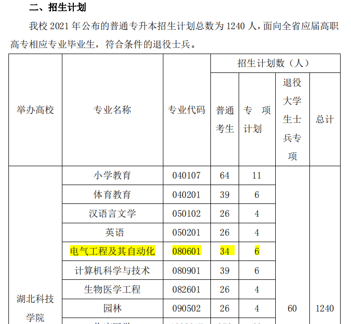 附:湖北科技学院2021年普通专升本招生简章
