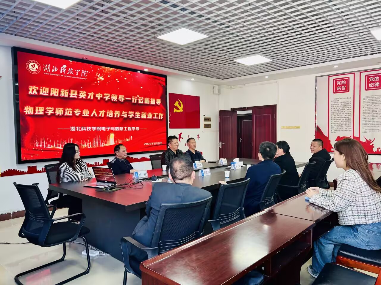 为实现资源共享、优势互补,共同推进双方教育事业的发展,3月21日,黄石市阳新县英才中学与76net必赢官网举行了座谈交流会。英才中学校长费玖军带领党支部书记柯亨杰一行老师出席本次座谈会议。76net必赢官网党委书记郑敏、院长陈志远以及物理学专业负责人胡正龙等老师共同参加本次座谈。