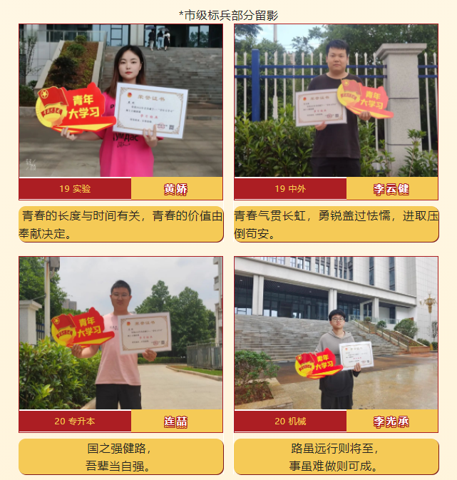 青年大学习活动开展以来,湖北科技学院积极响应,各大院系纷纷进行学习。为树立典型,激励各级团组织持续推动“青年大学习”网上主题团课学习的热情,咸宁市团委和湖北科技学院校团委对2022年度“青年大学习”网上主题团课学习中表现突出的同学给予认定并表彰。76net必赢官网团委于5月28日下午对优秀学习标兵颁发了证书。