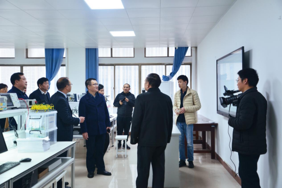 3月22日下午,原教育部部长、中国科协智能制造学会联合体主席团主席、中国工程院院士周济,中国兵器工业集团公司首席科学家、中国机械工程学会理事长兼秘书长、中国科学院院士毛明,湖北省智能制造学会联合体秘书长朱永平一行三人来院考察。校党委书记闫英姿,校党委副书记、校长吴基良陪同考察。