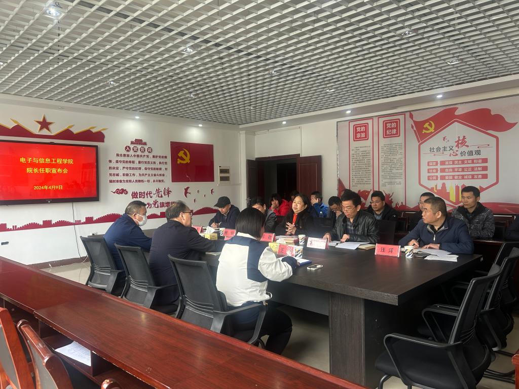 会议开始,党委组织人事部副部长王乔宣读校党委的任职文件,任命陈志远同志为电子与信息工程学院院长。