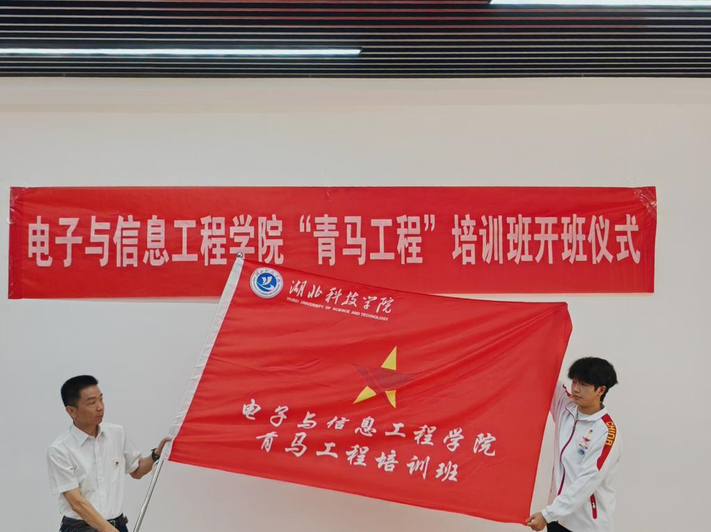 紧接着,进行的是庄严的授旗仪式。陈志远院长将象征着青马班荣誉和责任的旗帜郑重交给了新任青马班班长李奇。李奇接过旗帜,高高举起,在空中挥舞,展现了青马班全体学员的决心与信心。鲜红的旗帜在会场上方迎风飘扬,象征着青马班全体学员将以崭新的姿态开启未来的征程。