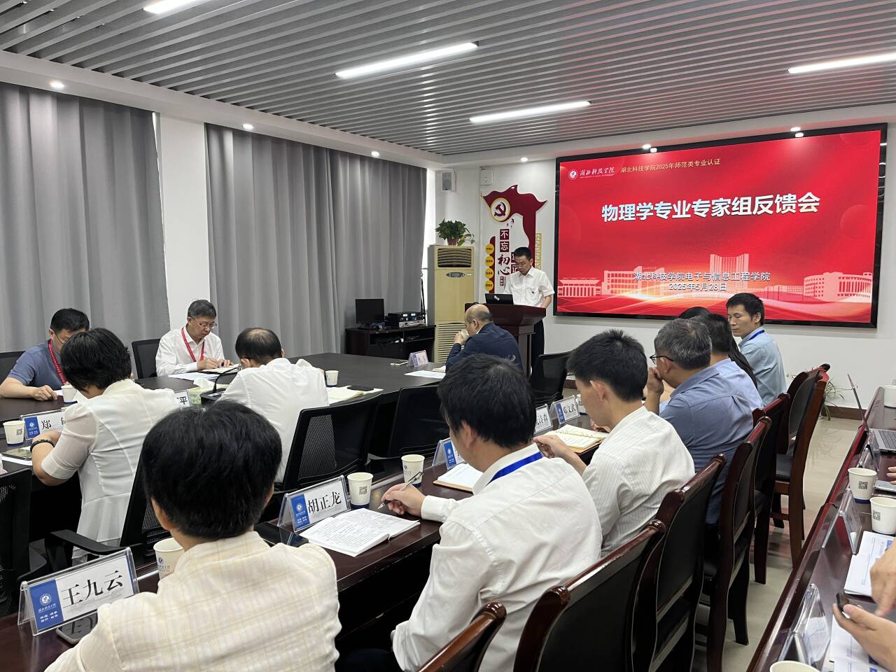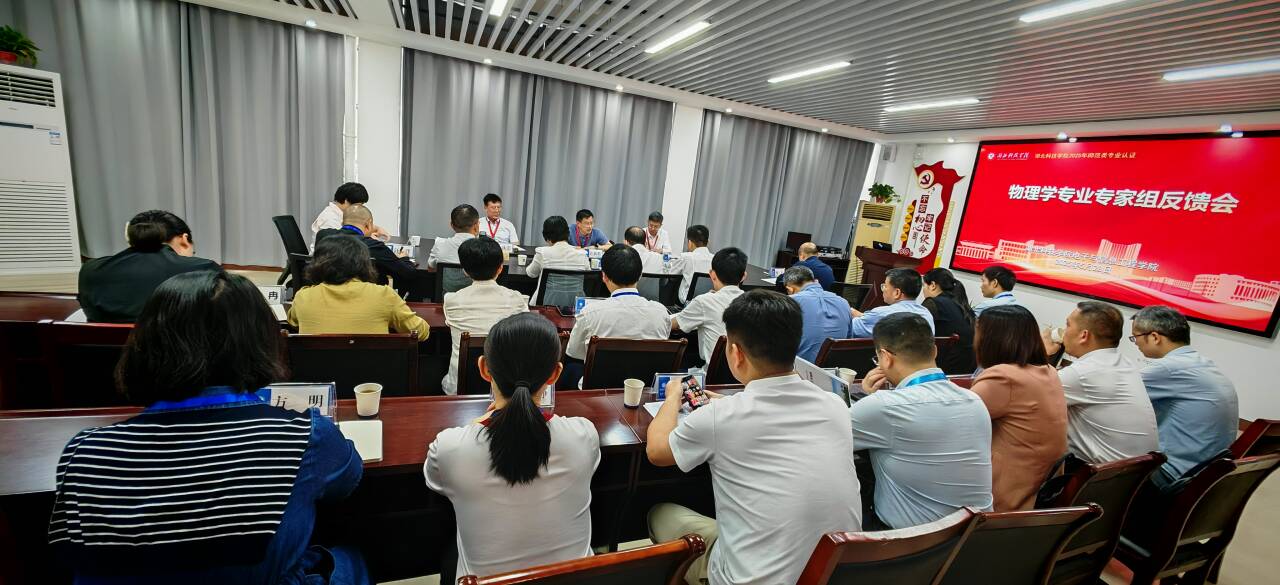2025年5月28日上午,湖北科技学院电信学院会议室召开76net必赢官网考查反馈会议。会议由安徽师范大学科研处处长许新胜主持,汉江师范学院副校长陈俊、佳木斯市教育局副局长于庆澎等认证专家,湖北科技学院副校长胡旺平、教务处副处长曾志刚等领导,以及电信学院党政领导班子、物理学专业教师代表共同出席会议。