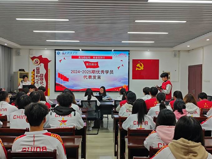 随后的“新声展望”环节,杨宸宇作为新学员代表发言。他坦言 “青马班不是荣誉标签,而是思想成长的‘加油站’”,并承诺将带领新学员沉心研读马克思主义经典,积极参与实践活动,以“知行合一”践行青年马克思主义者的使命,话语间满是电信学子的责任担当。